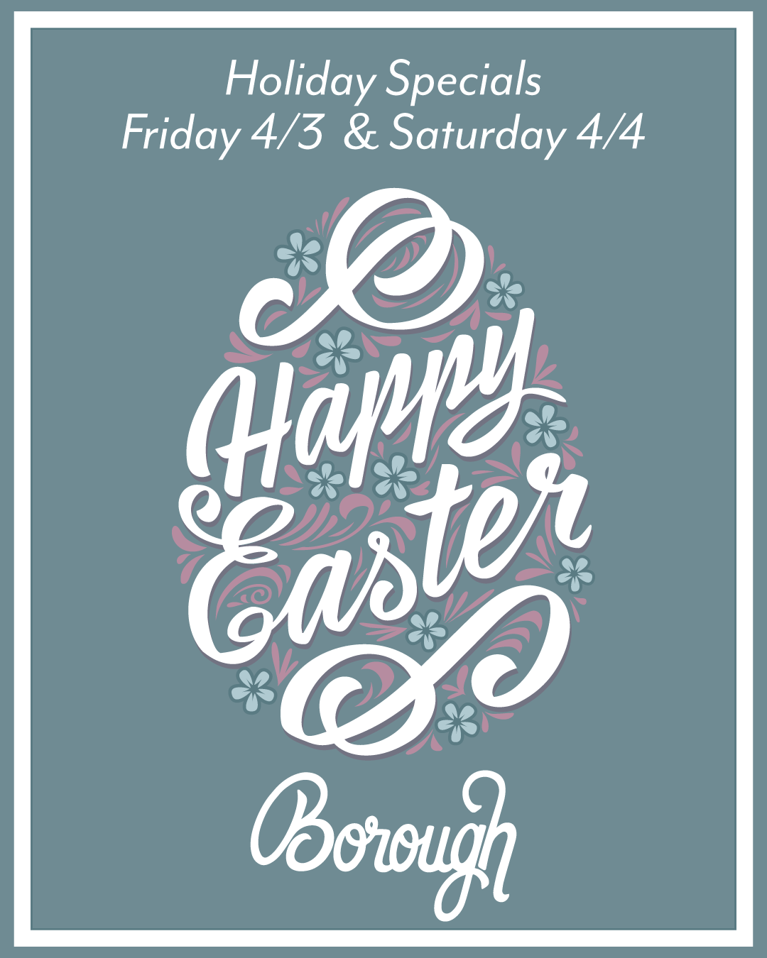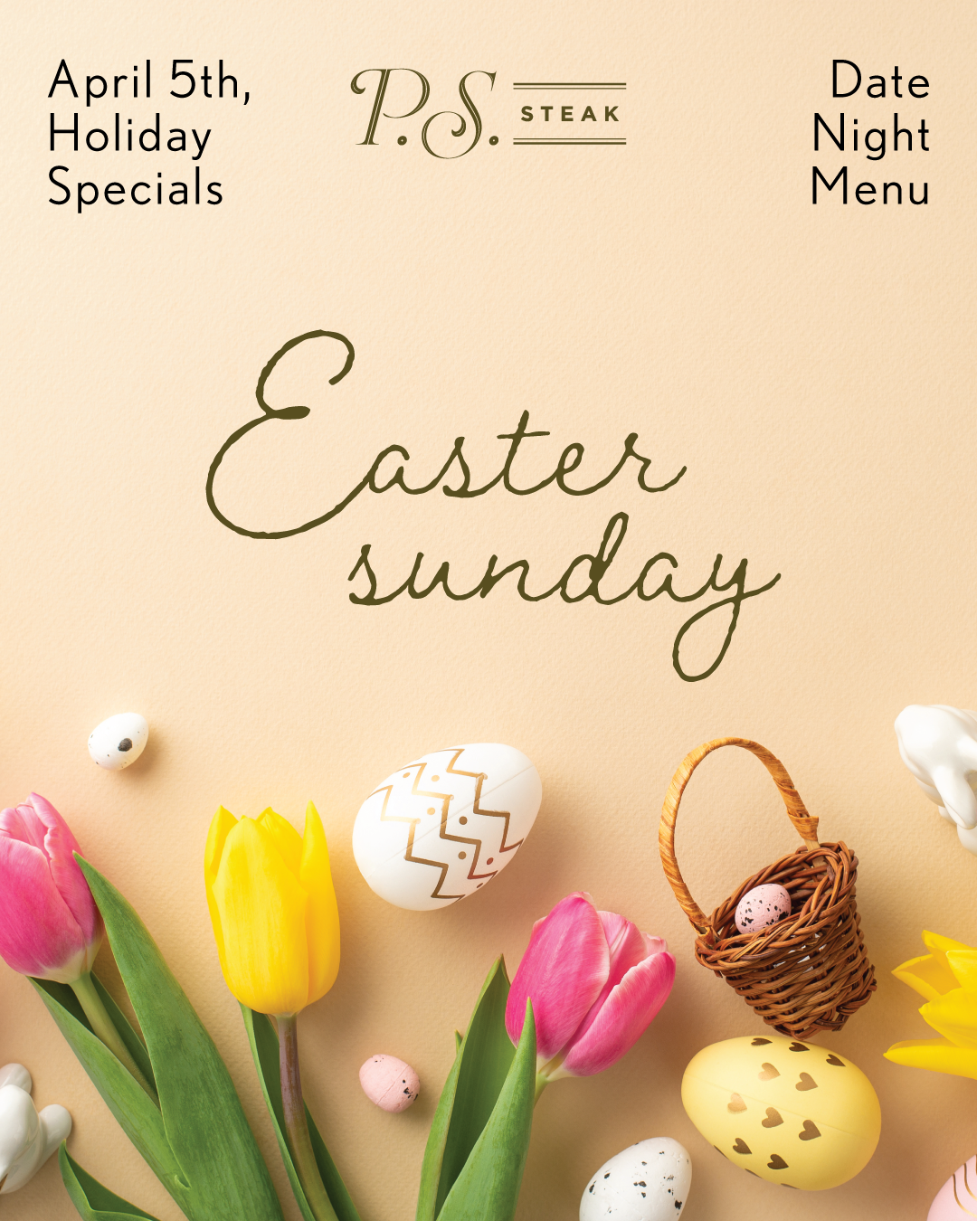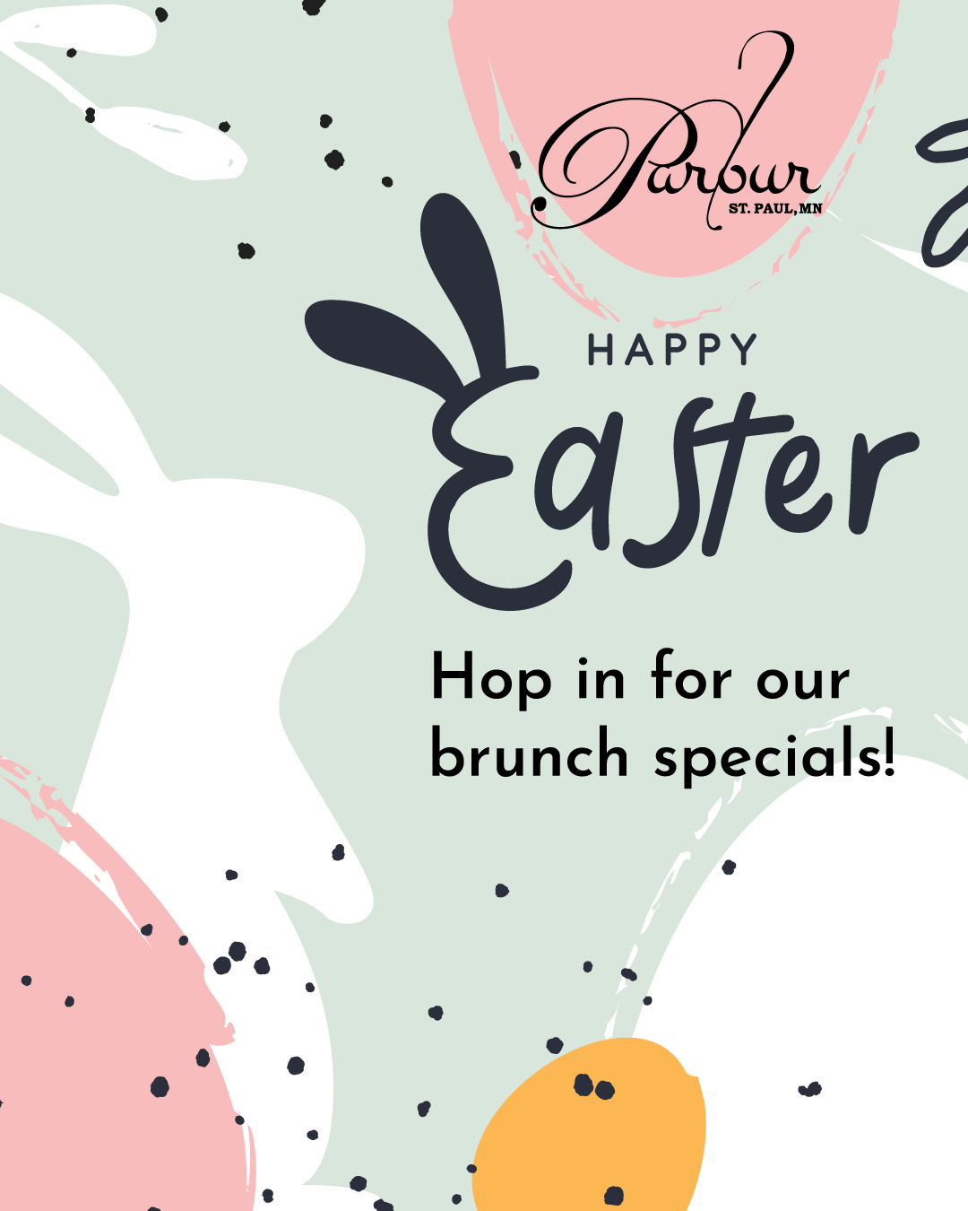 EASTER 2026Bring the family in for brunch, or grab your friends for some evening fun! RusticaHoliday Pre-Orders open through 3/24 MirabelleBrunch Buffet, Sunday April 5th P.S. SteakFeatured Menu & Date Night Menu BoroughHoliday Specials 4/3 - 4/4 Butcher & the BoarBrunch Buffet, Sunday April 5th StarlingFeatured Brunch Menu, Sunday April 5th Parlour St PaulFeatured Brunch Specials, April 5th